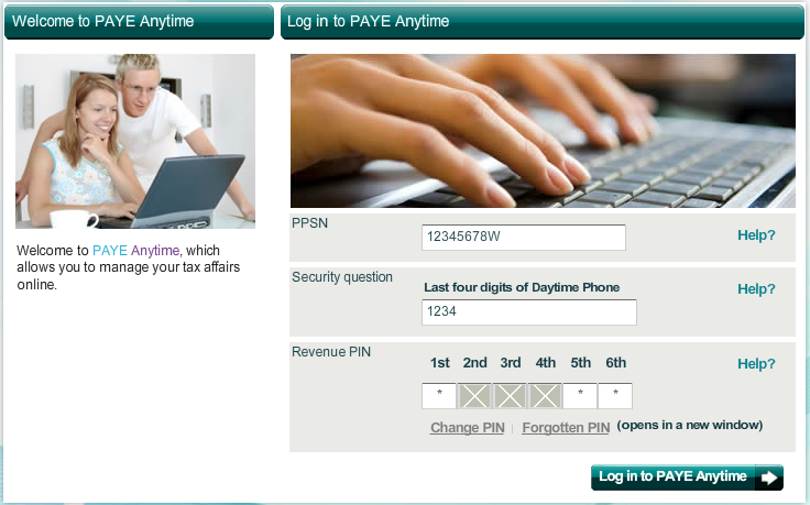 Step 4.1 Logon to PAYE Anytime at https://www.ros.ie/payeAnytime/payeAnytime.html (linked from www.revenue.ie)